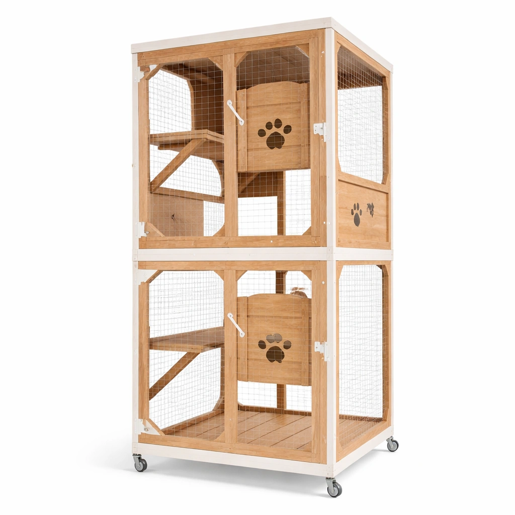Cuenta con 2 puertas con bisagras, 3 niveles y ruedas giratorias.